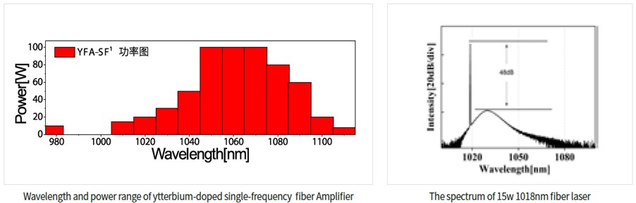 With excellent SBS and relative intensity noise suppression technology, fiber amplifier with up to 120 W power, excellent relative intensity noise and wide wavelength range covering (1010-2051nm) could be achieved.