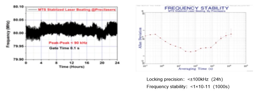 | Frequency shift (MHz) | <10@1hour |